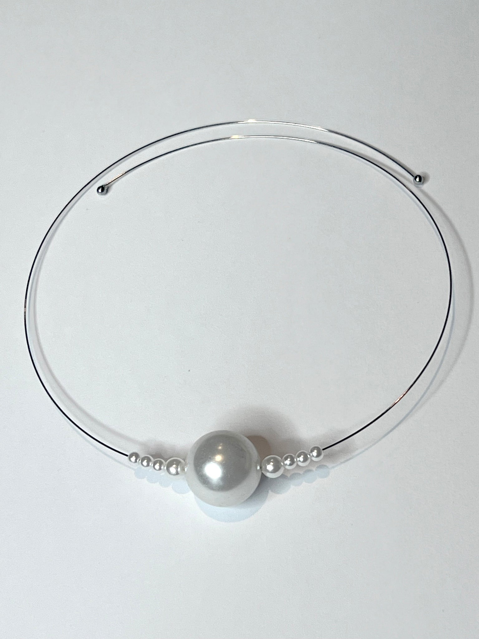 Faux pearls on memory wire necklace